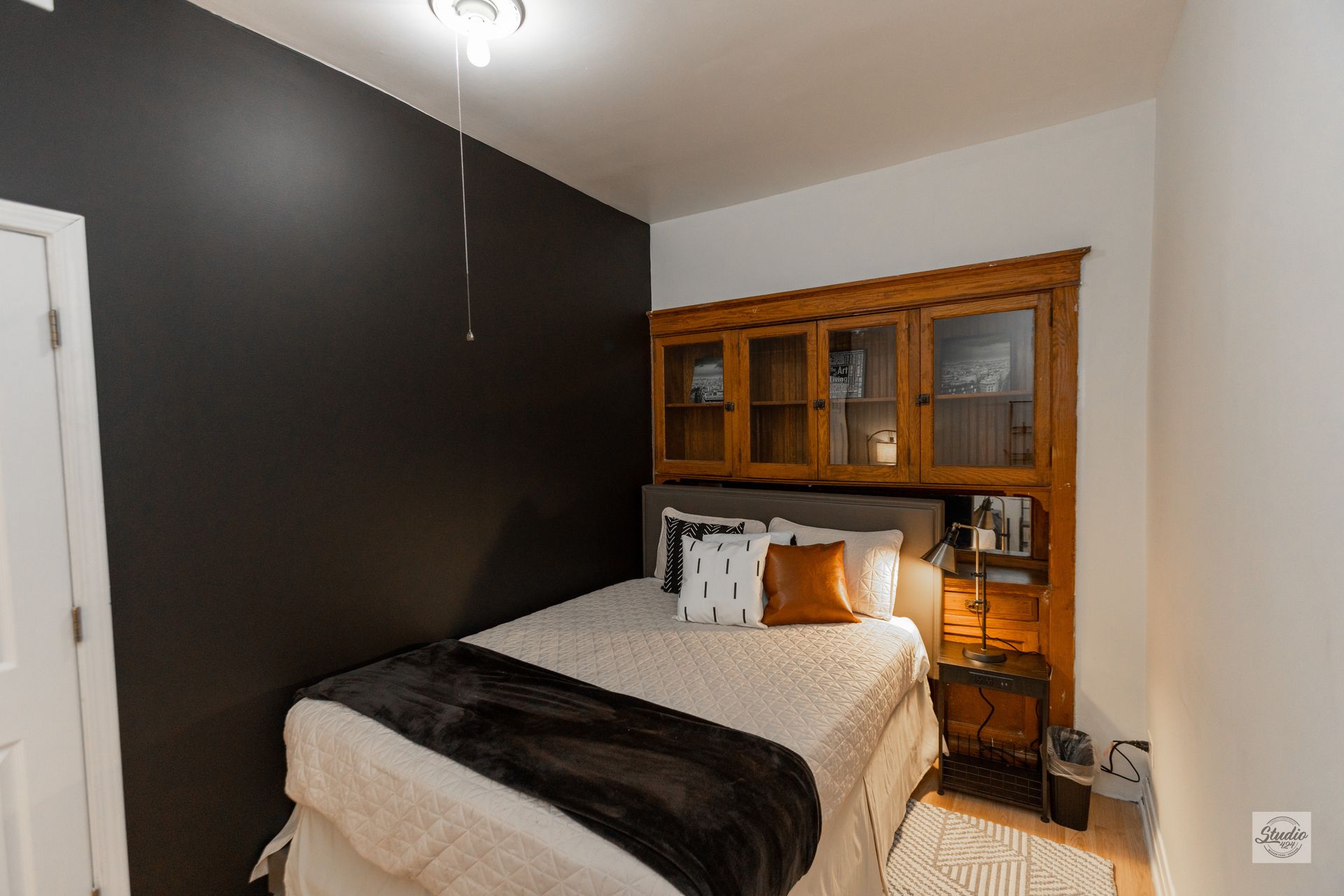 Equipped with a queen size bed, large headboard and 32 inch flatscreen tv,. Ashland Avenue is right outside your window, so if you are a light sleeper, we suggest you pick another room! Room is completely private with access to heat control, mirror and selving to store your belongings.